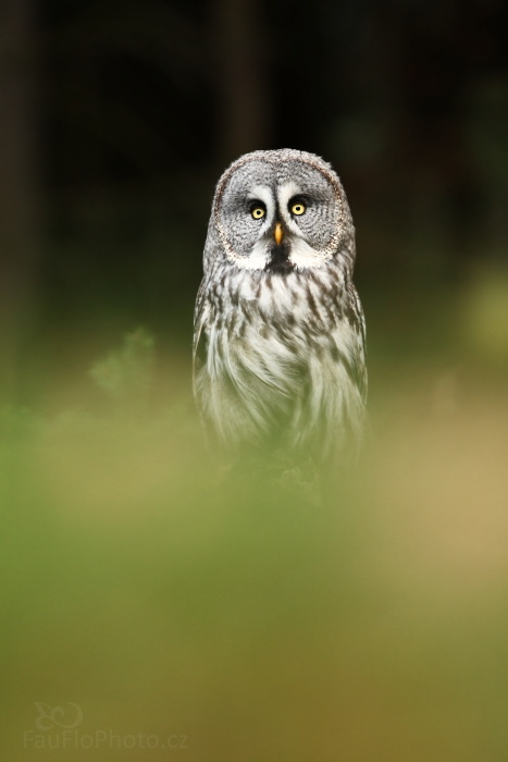 Les plný sov, na zeleném koberci, stále bez sněhu