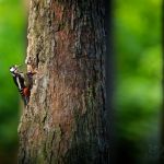 Strakapoud velký, večerní fotografování v rezervaci